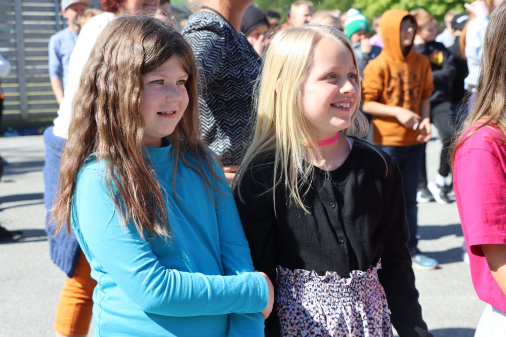 — Me hadde øvd masse på BlimE-dansen, seier dei to åtteåringane og let seg imponere over rektor sin innsats.