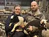 Vibecke Mandelid og Gudmund K. Håkull med kvar sitt lam av det dekorative slaget.