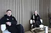 Lasse Grindheim og Siren Haugland Gundersen legg opp til at kundar kan ta ein pause i kaffekroken i det nye kundemottaket.
