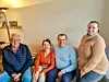 Gunnar Birkeland (t.v.) og Kateryna Svendsbøe (t.h.) bidrar til å integrere flyktningar som det ukrainske ekteparet Oleg Bulaiev og Gala Bulaieva i lokalsamfunnet i Vikebygd.