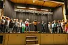 Det svinga godt då elevane - i lag med Frank Robert Abelseth framførte låten Luksus-etui. Alle elevane song for full hals, og dei to gitaristane Egil Messe Jacobsen og Andreas Xie Juel levde seg skikkeleg inn i rollene som «sologitaristar»