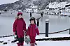 og søstera Nora (9) og set kursen mot båthamna i Etne der sjøisen ligg blank og