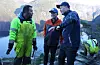 John Karsten Husteit (f.h.) og Leif Grindheim gler seg over at ei gåve gir meir fart på utbygginga av Lanfosstien. Her med arbeidsleiar Nima Sherpa ved eit tidlegare høve. Leif Grindheim og John Karsten Hustveit.