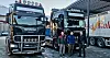 Tor Sørhus (t.v.) og Torgeir Sørhus i Sørhus Sal & Transport har kjøpt to lastebilar av Rune Pedersen, som styrte Husøy Frakt AS fram til nyttår. Scania-bilen til høgre et utt bytta ut med ein nyare Scania.
