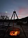 Rim på bakken og fyr i bålpanna på Heiabø 1.juledag.Berit Haugland